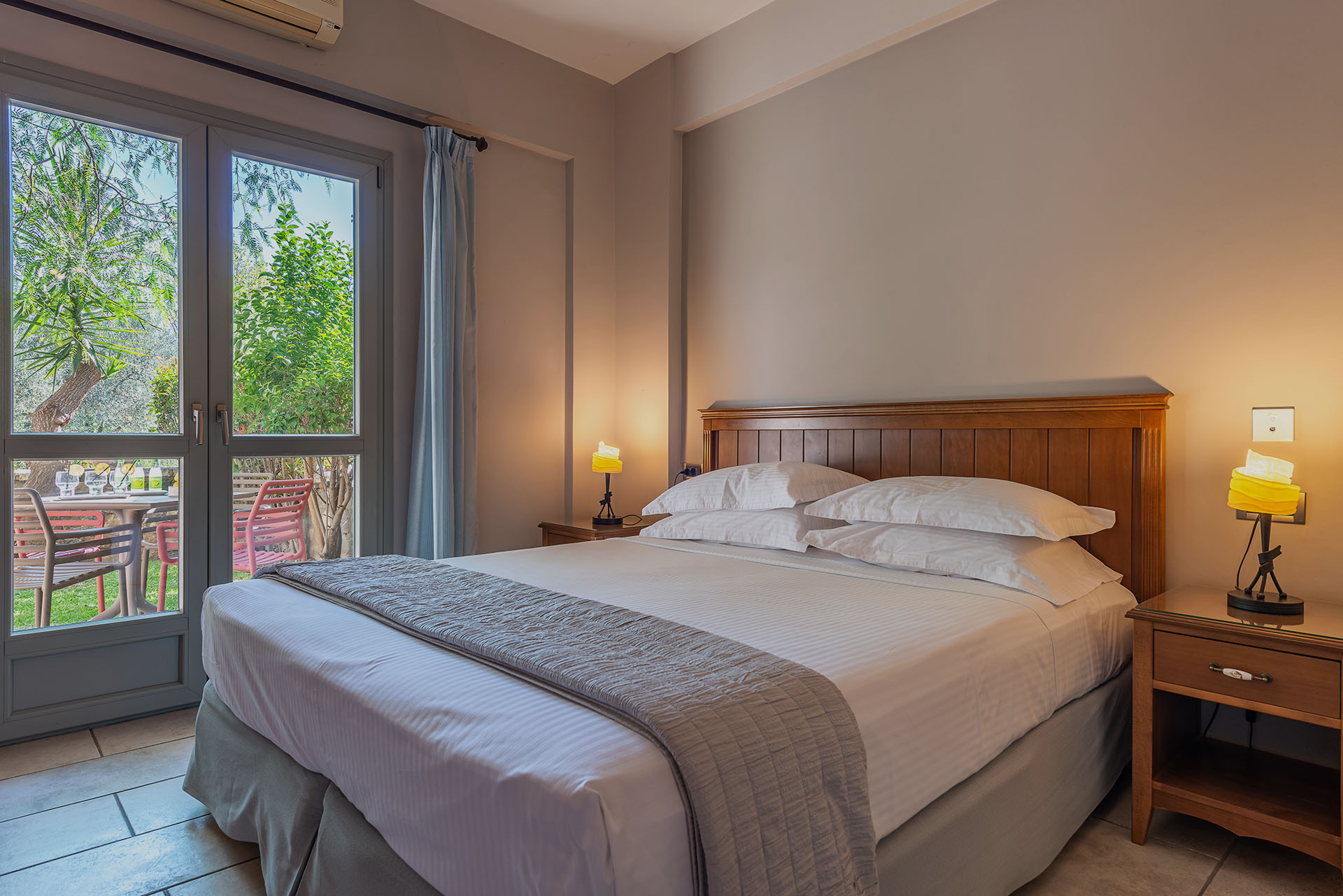 Discover the uniqueness of each apartment that has been designed with functionality and high aesthetics in mind to ensure a perfectly balanced and relaxing atmosphere. All apartments have independent entrances from outside, private terraces or gardens guaranteeing privacy and security throughout your stay. Particular attention has been paid to the high quality of sleep using ecological mattresses and bed linen of high standard. The fully equipped kitchens give you the opportunity to cook anything you wish and why not try a recipe from the Greek traditional cuisine.